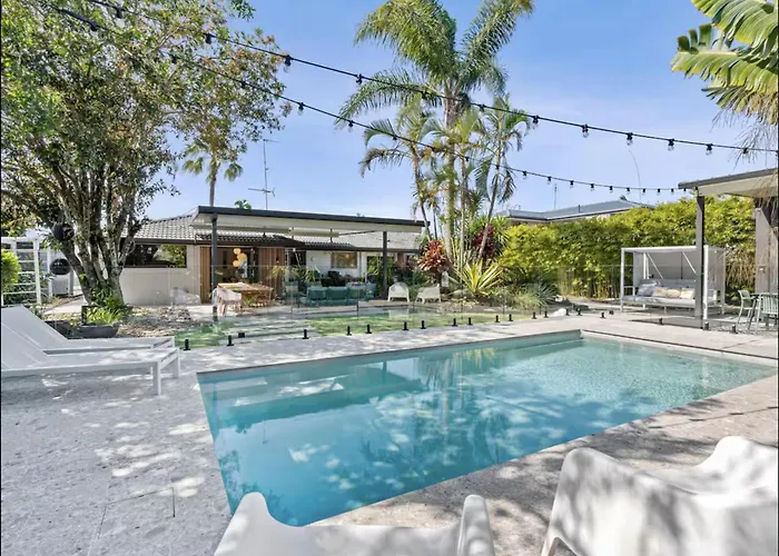 Palm Beach Poolside Haven 4BR Outdoor Living Gold Coast villa is binnen 4 km afstand van de Currumbin Beach Vikings Surf Life Saving Club gelegen en biedt een privézwembad, wat zorgt voor een ontspannen verblijf. Het vakantiehuis ligt in de Palm Beach wijk van Gold Coast en beschikt over een terras met het uitzicht over de rivier.